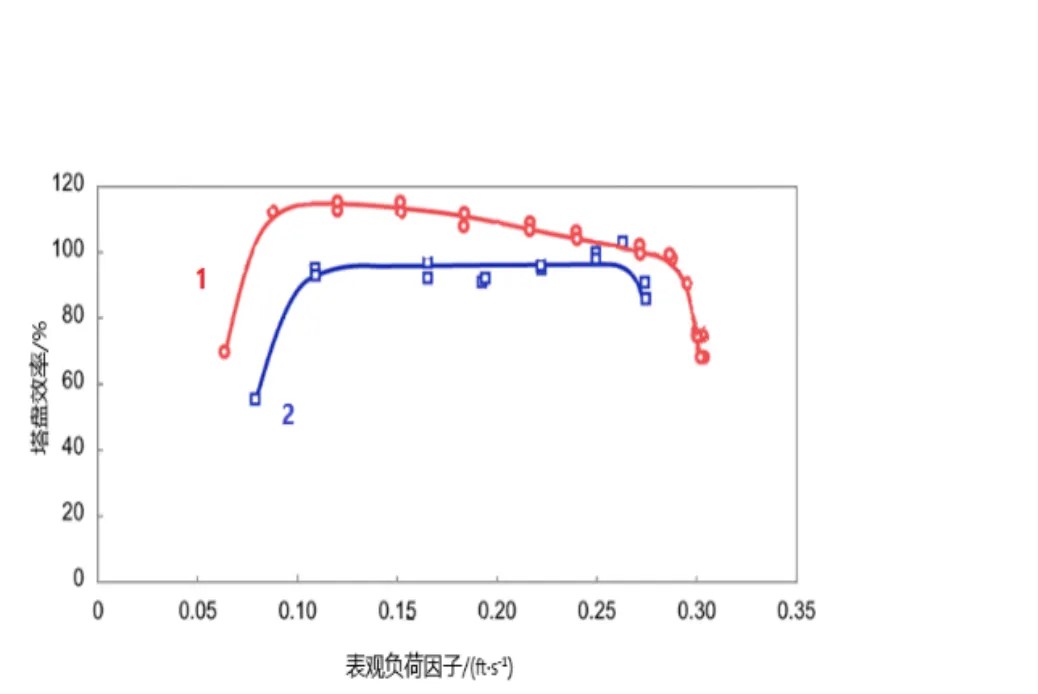 相关塔盘及性能曲线如图1和图2所示