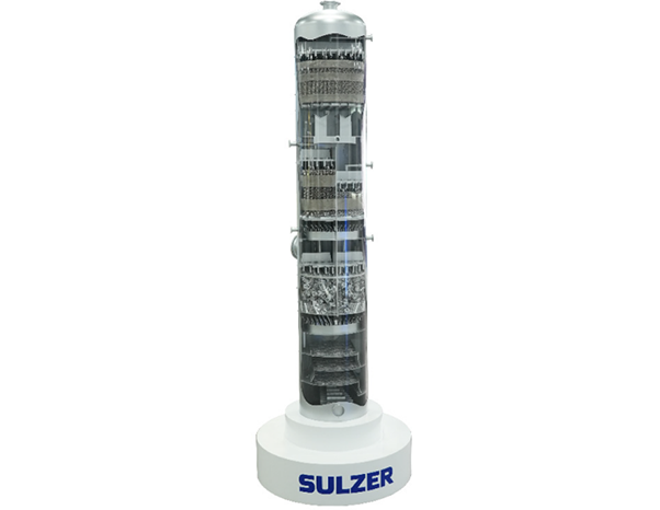 苏尔寿化工针对客户提出的多产品的分离要求,首先基于各类脂肪酸物性的完备数据库及成熟的流程模拟技术评估了隔板塔技术的应用可行性,随后在精确完成全塔物料平衡与热量平衡的基础上,最终采用苏尔寿新一代MellapakPlus™规整填料结合Mellatech™分布技术实现了隔板精馏塔的工程设计。